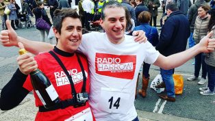 The race is a unique event in which teams of two take it turns to push their partner in a wheelbarrow, drink beer and race from Little Common to the High Street and into Church Green. Two of Radio Harrow’s volunteers, Jon Hart and Ant Sunney took part in the wheelbarrow race and came 8th out of 15.